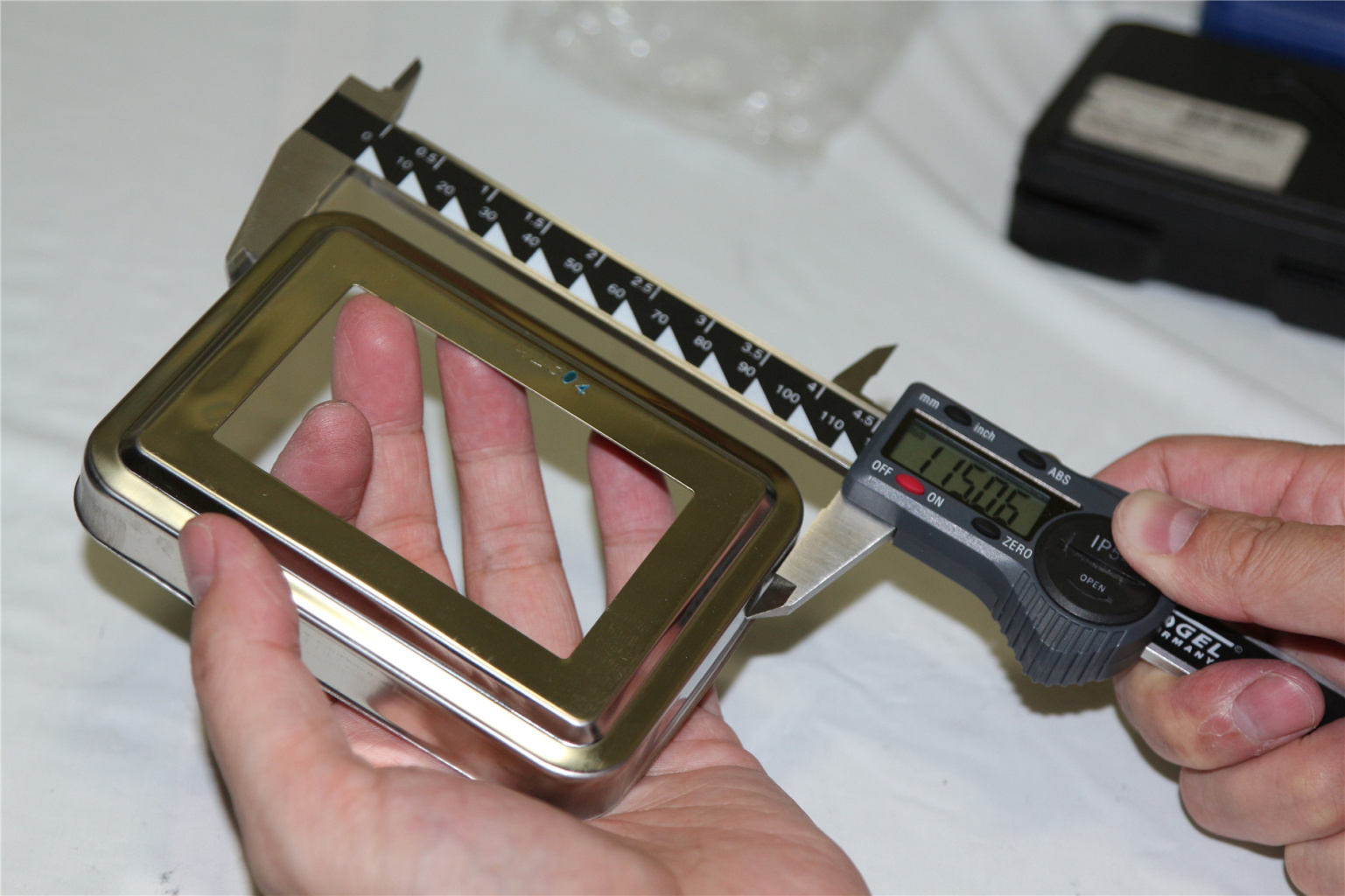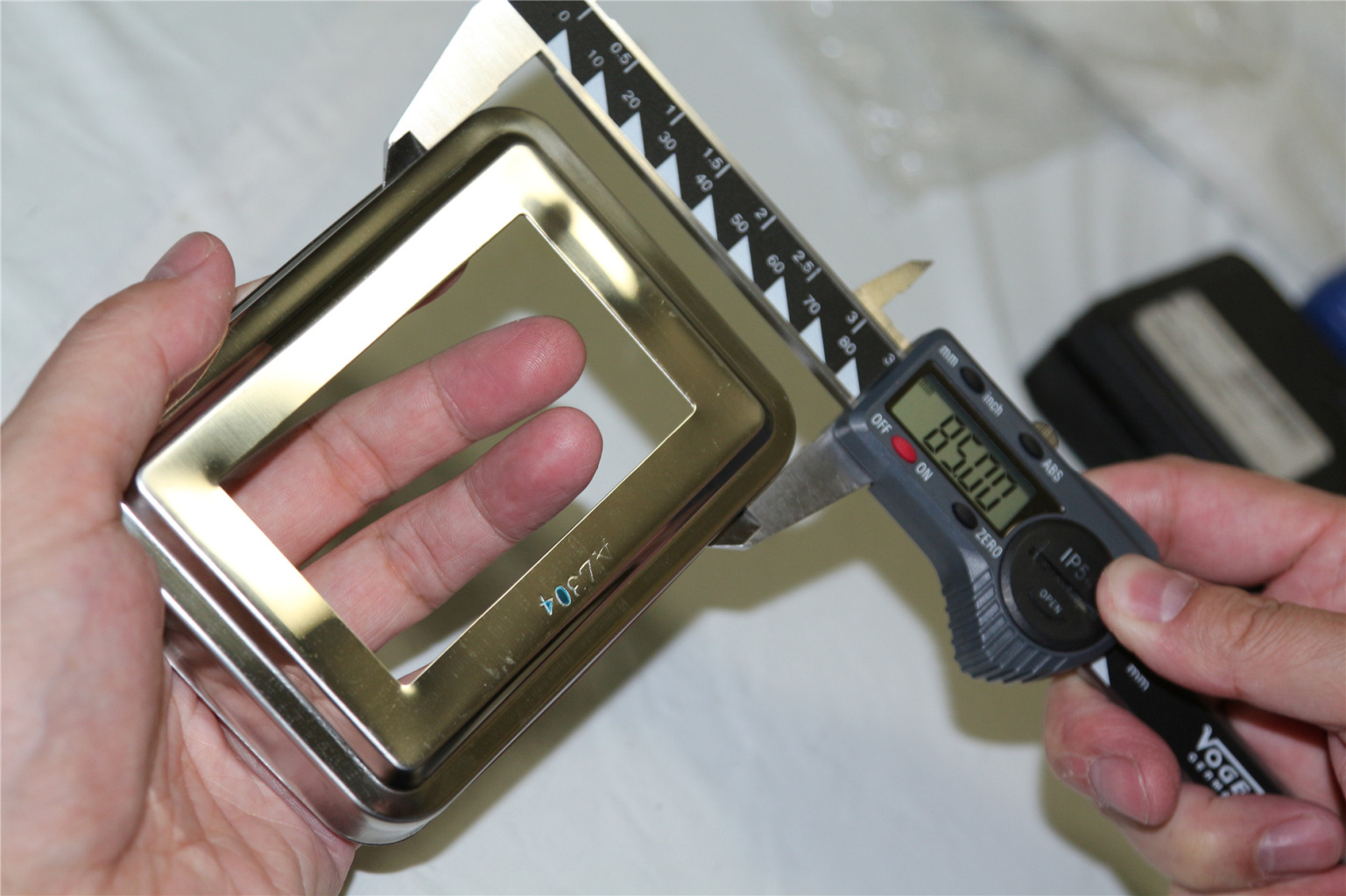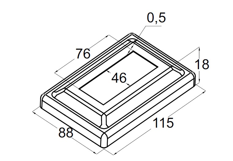 внешние габариты - 117х88 мм, внутренние габариты - 78х46 мм, толщина стенки - 0,5 мм