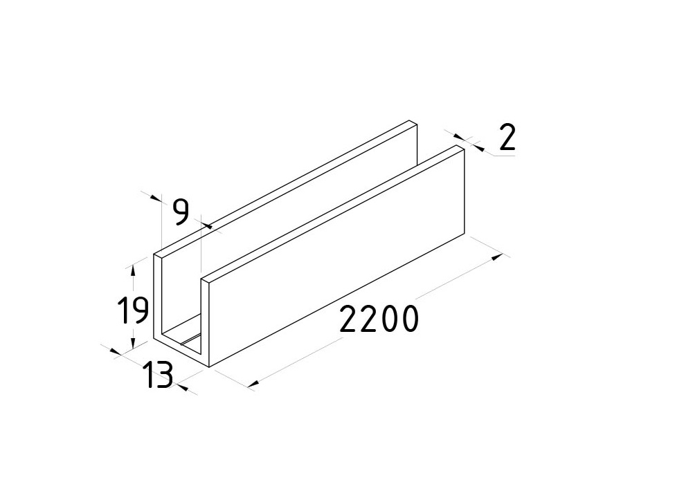 П-образный профиль 19x13, L=2200, алюминий шлифованный