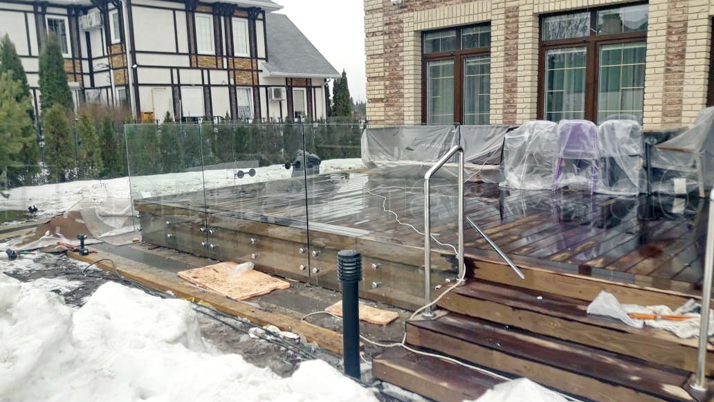 Ограждения на несущем стекле с торцевым креплением для балкона