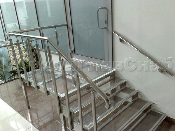 Ограждение для лестницы из нержавейки с зажимными стеклодержателями для крыльца