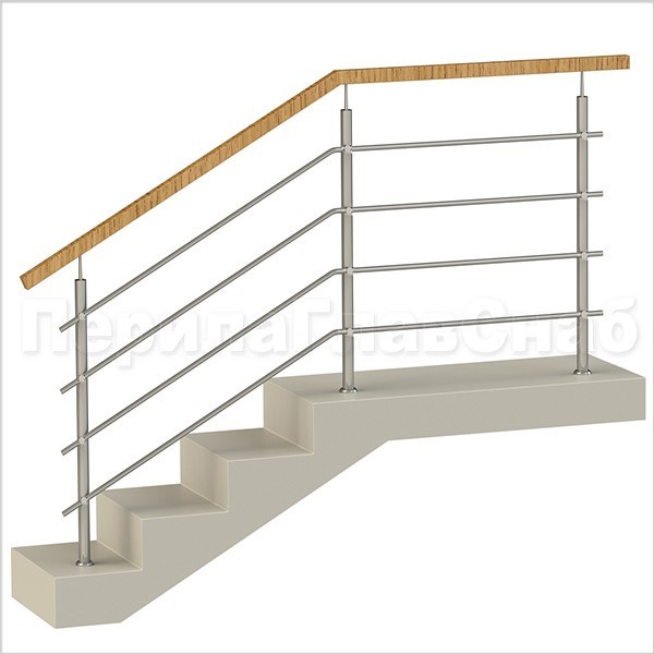 Записаться на встречу Четыре ригеля на держателях, квадратный деревянный поручень и круглые стойки