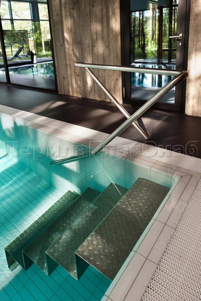 Ограждение для лестницы из нержавейки с зажимными стеклодержателями для крыльца