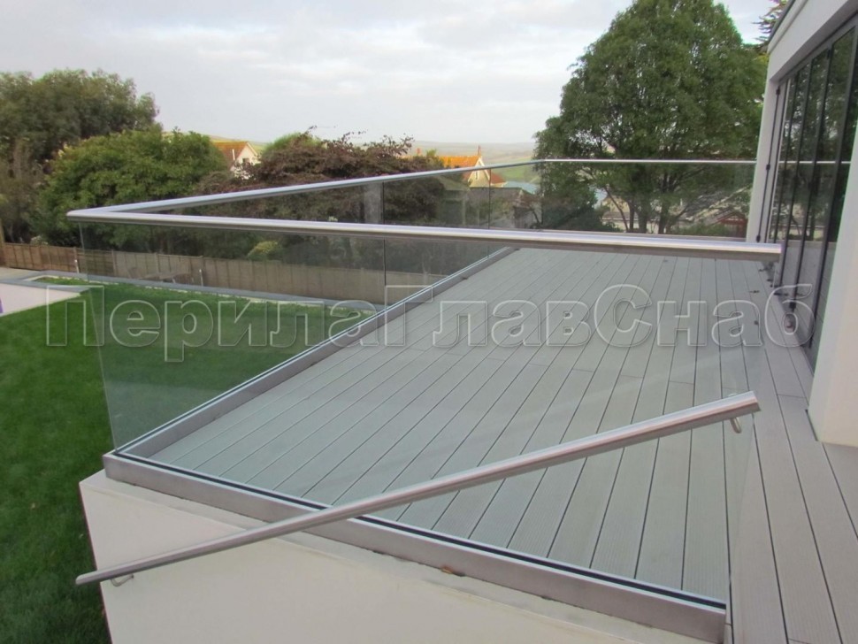 Ограждение на несущем стекле с торцевым креплением для крыш