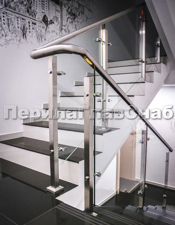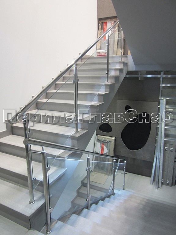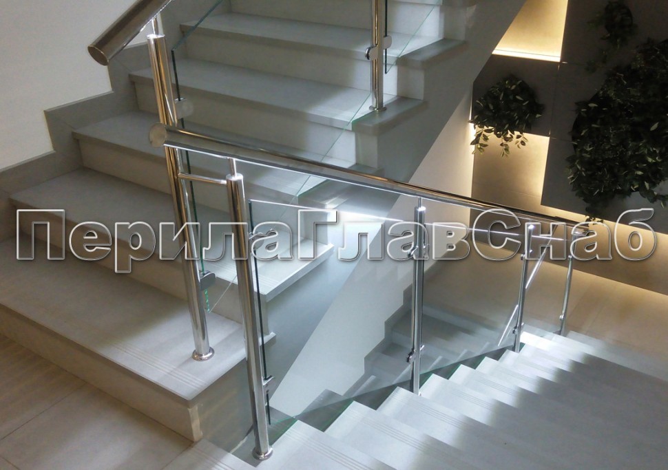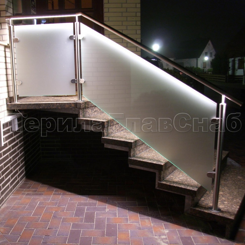 Ограждение для лестницы из нержавейки с зажимными стеклодержателями для крыльца