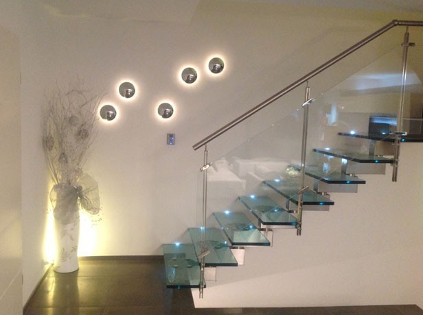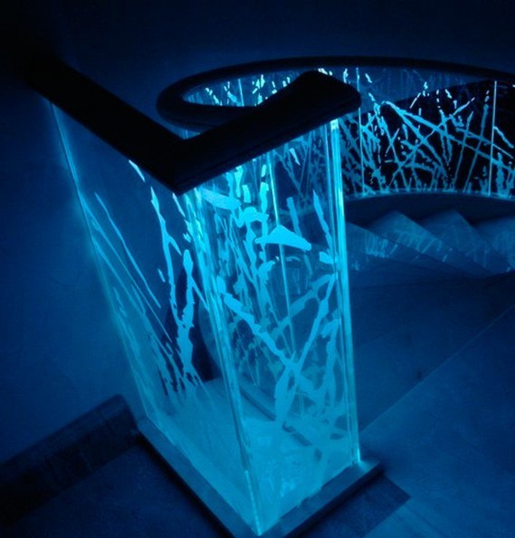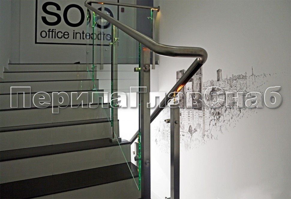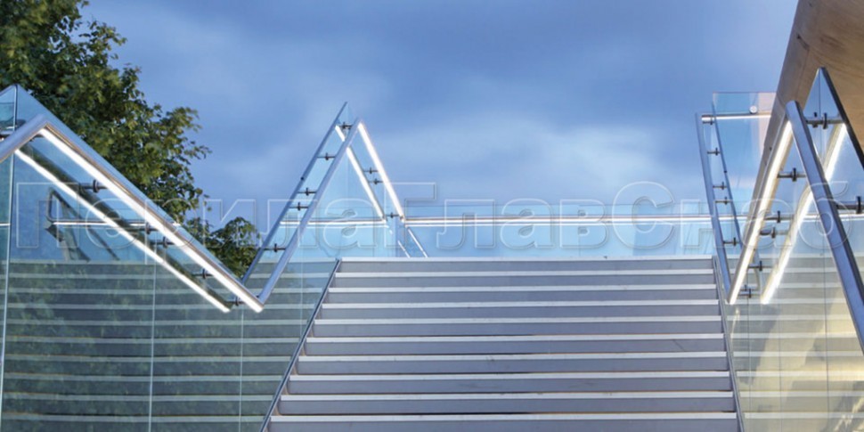 Стеклянные ограждения винтовой лестницы и баллюстрады