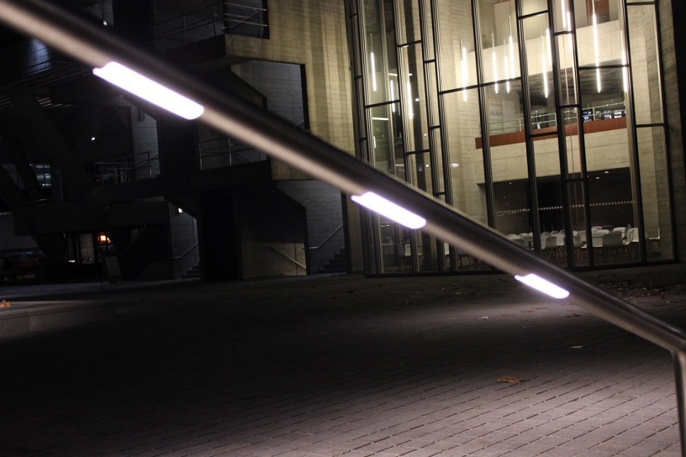 Четыре ригеля на сварке, квадратный поручень и круглые стойки