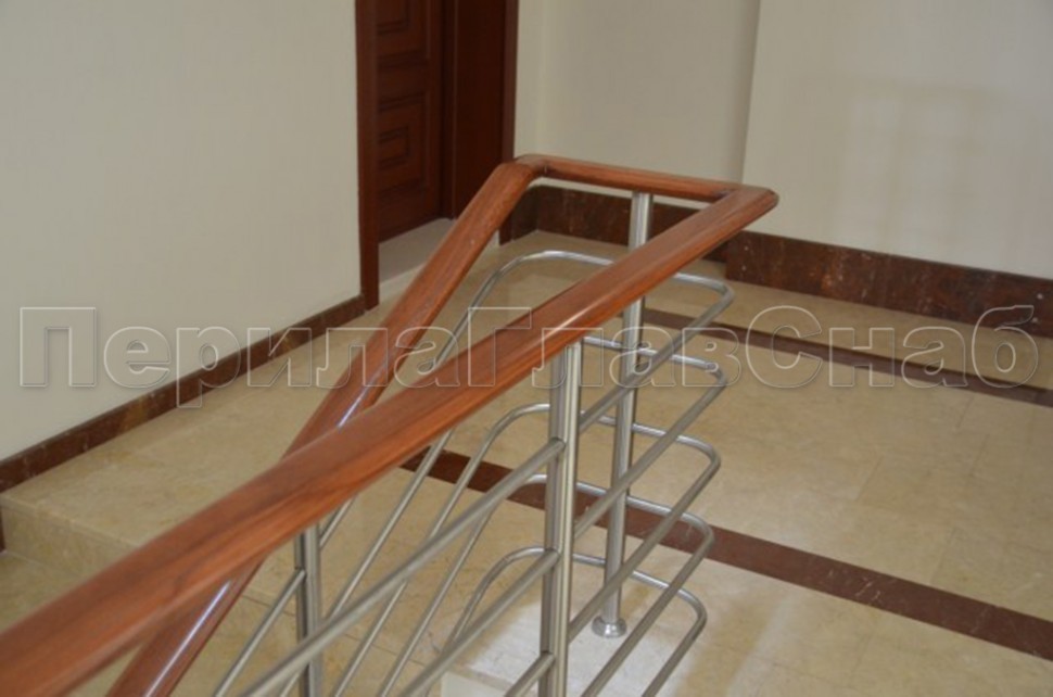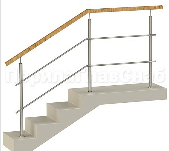 Два ригеля на сварке, квадратный деревянный поручень и круглые стойки
