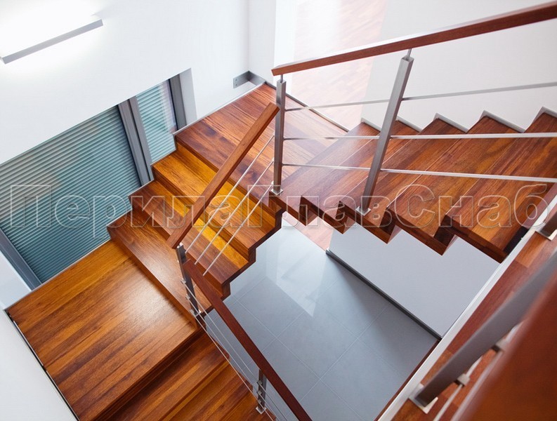 Ограждения с двумя стойками в каждую ступень с деревянным поручнем и без ригелей