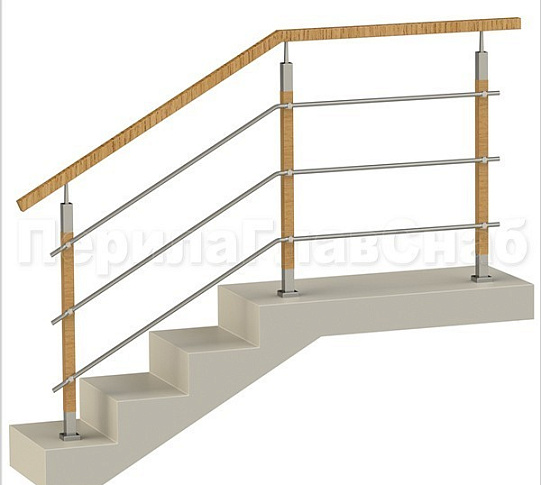 Два ригеля на держателях, круглый поручень и квадратные деревянные стойки