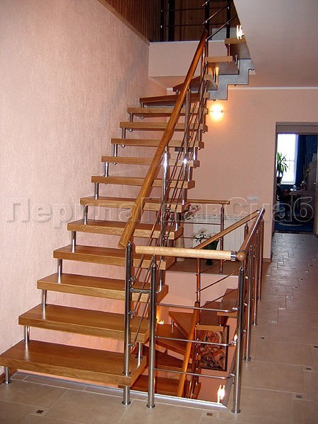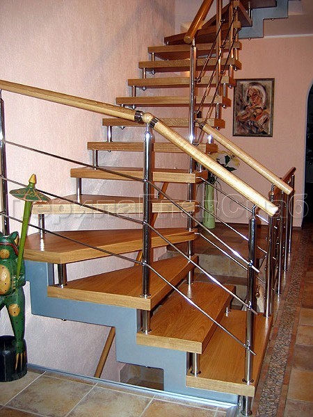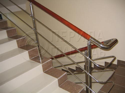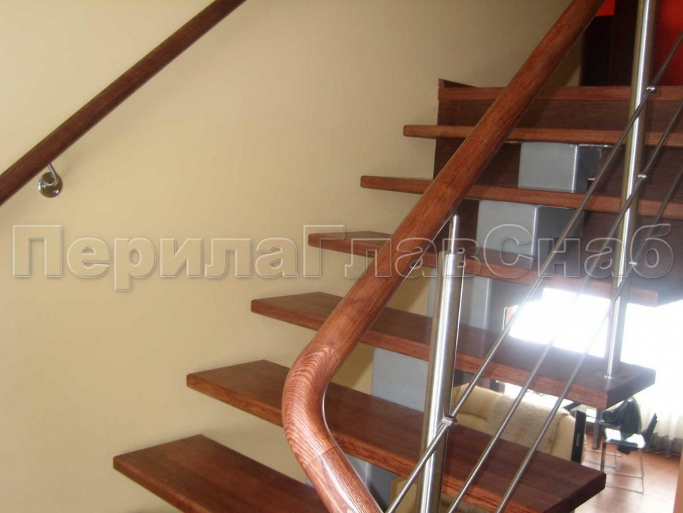 Записаться на встречу Три ригеля на сварке, круглый деревянный поручень и круглые стойки
