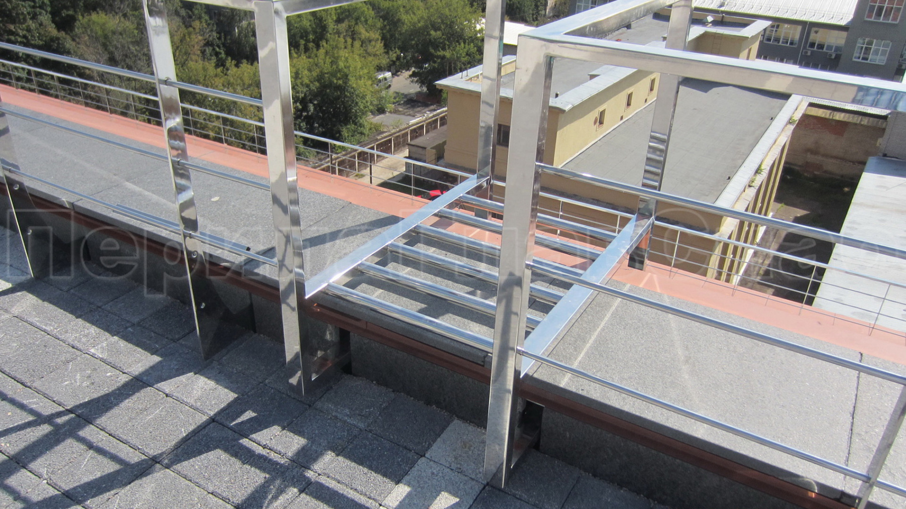 Кровельное ограждение из нержавеющей стали со стеклами в Краснодаре. Готовые проекты ПерилаГлавСнаб