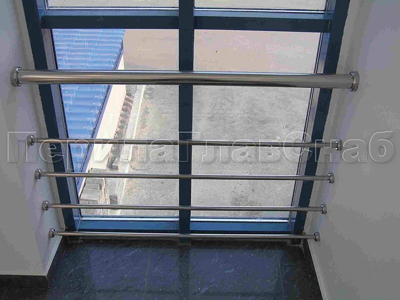 Компоненты ограждения из нержавеющих труб на оконный проем: