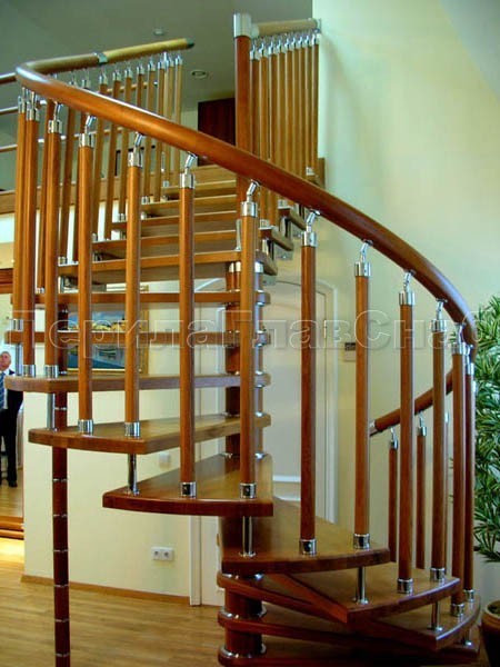 Записаться на встречу Ограждения с двумя стойками в каждую ступень с деревянным поручнем и без ригелей
