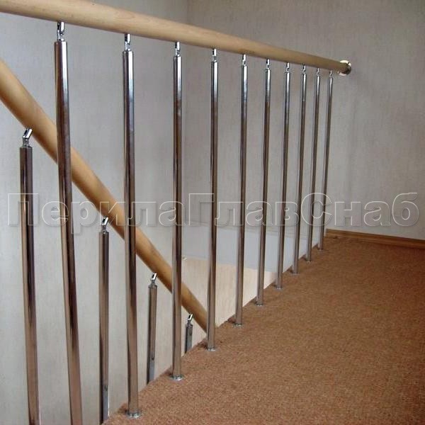 Четыре ригеля на держателях, квадратный деревянный поручень и квадратные стойки