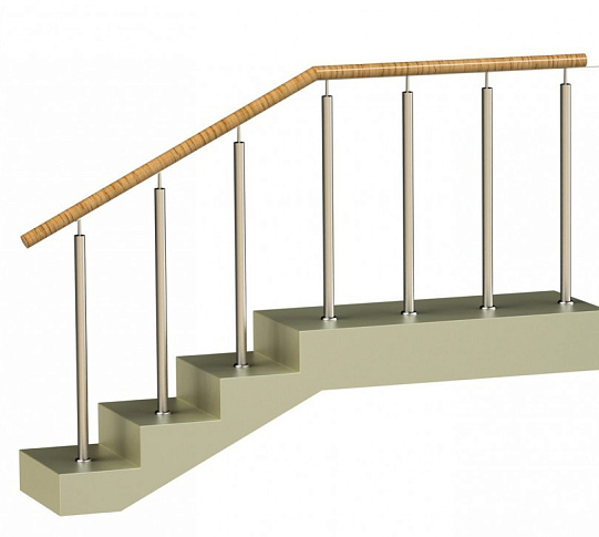 Ограждения с двумя стойками в каждую ступень с деревянным поручнем и без ригелей