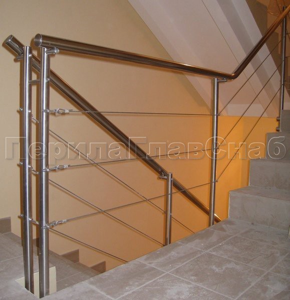 Записаться на встречу Ограждения из нержавейки. Заполнение из 3х тросиков. Квадратные стойки.