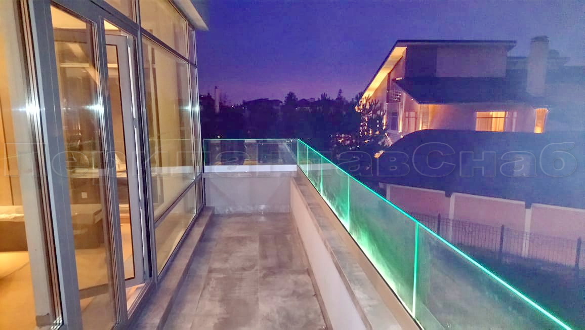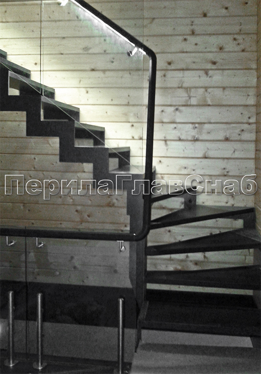Ограждения лестниц на несущем стекле с подсветкой в Краснодаре. Готовые проекты ПерилаГлавСнаб