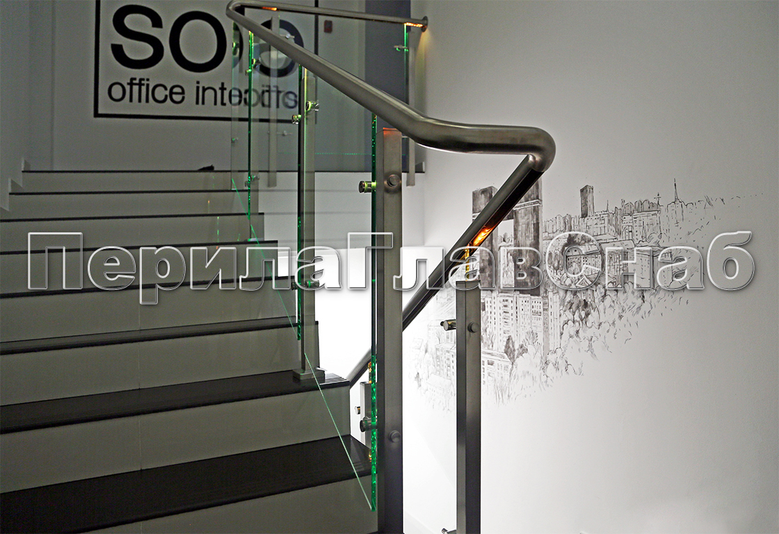 Нержавеющие перила и ограждения со стеклом и подсветкой