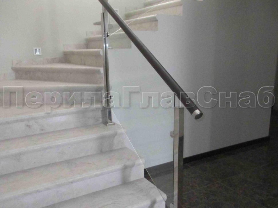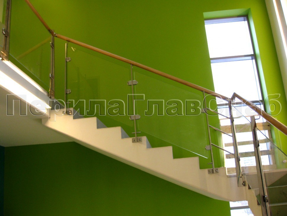 Ограждения лестницы без поручня с зажимными стеклодержателями и стойками
