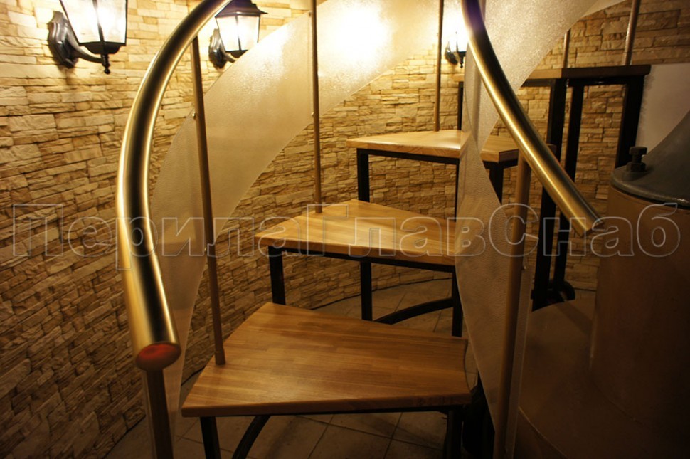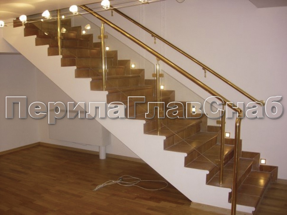 Записаться на встречу Ограждение лестницы со стеклом, тонированным в массе, стойки и завязки поручня из латуни