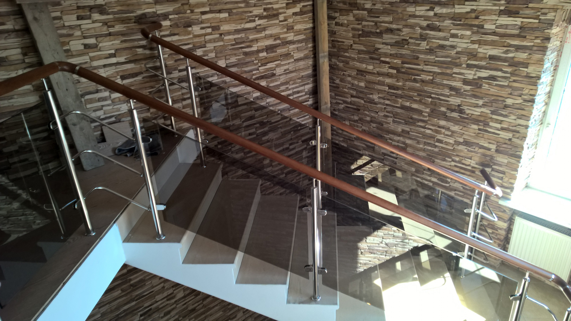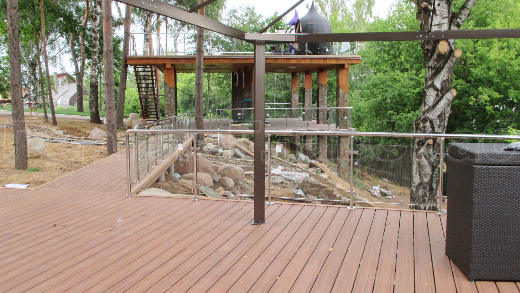 Ограждение с деревянным поручнем с зажимными стеклодержателями и стойками в Краснодаре. Готовые проекты ПерилаГлавСнаб - фото 1 Ограждение с деревянным поручнем с зажимными стеклодержателями и стойками в Краснодаре. Готовые проекты ПерилаГлавСнаб - фото 2