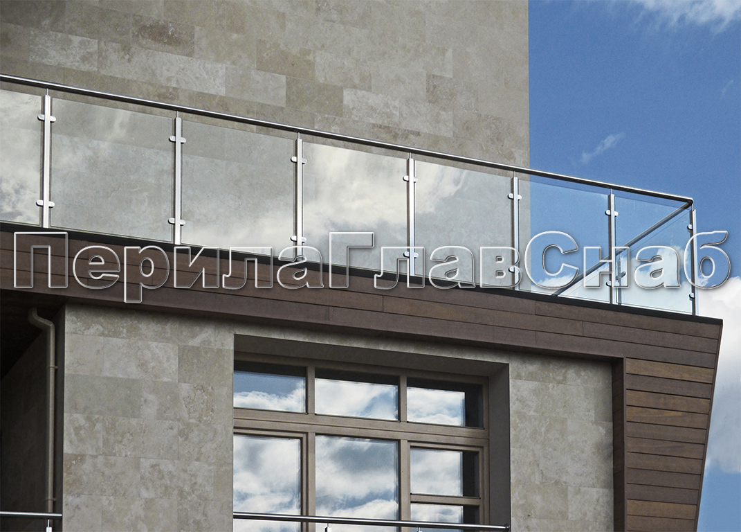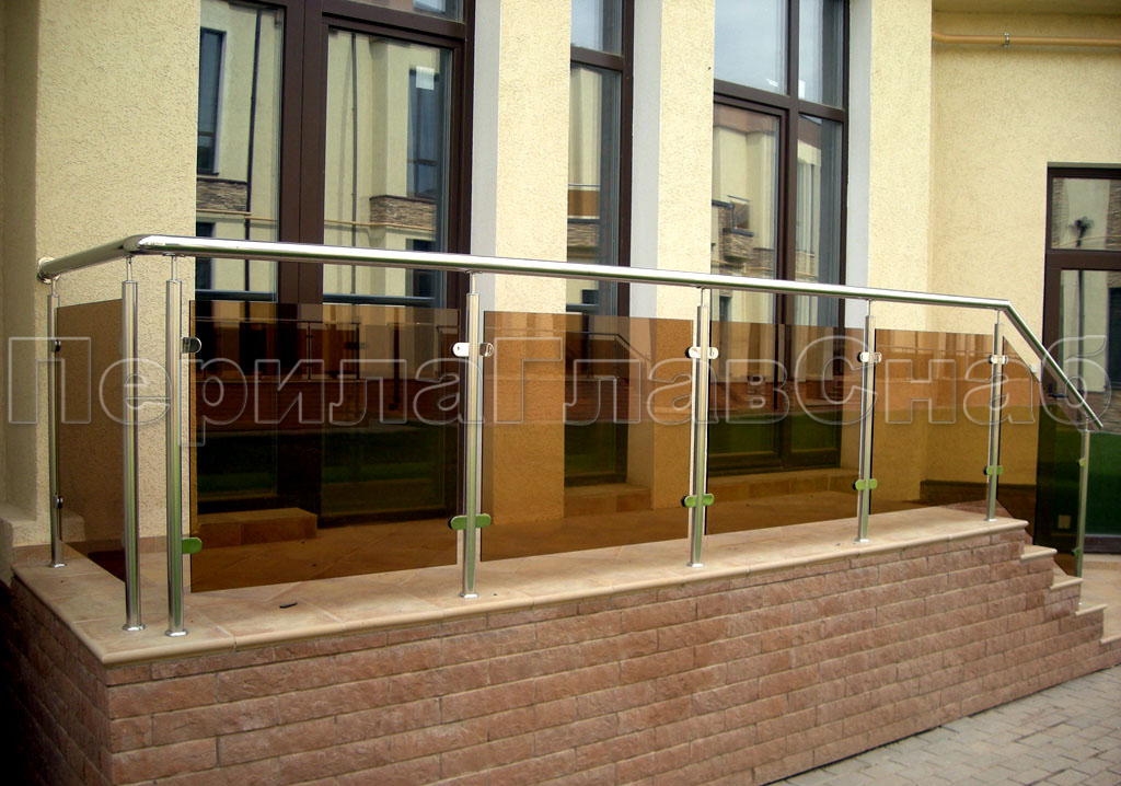 Ограждение для лестницы из нержавейки с зажимными стеклодержателями для крыльца в Краснодаре. Готовые проекты ПерилаГлавСнаб