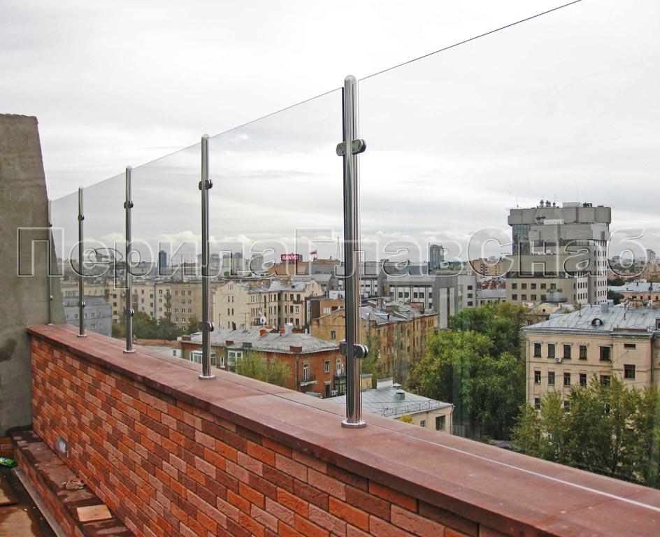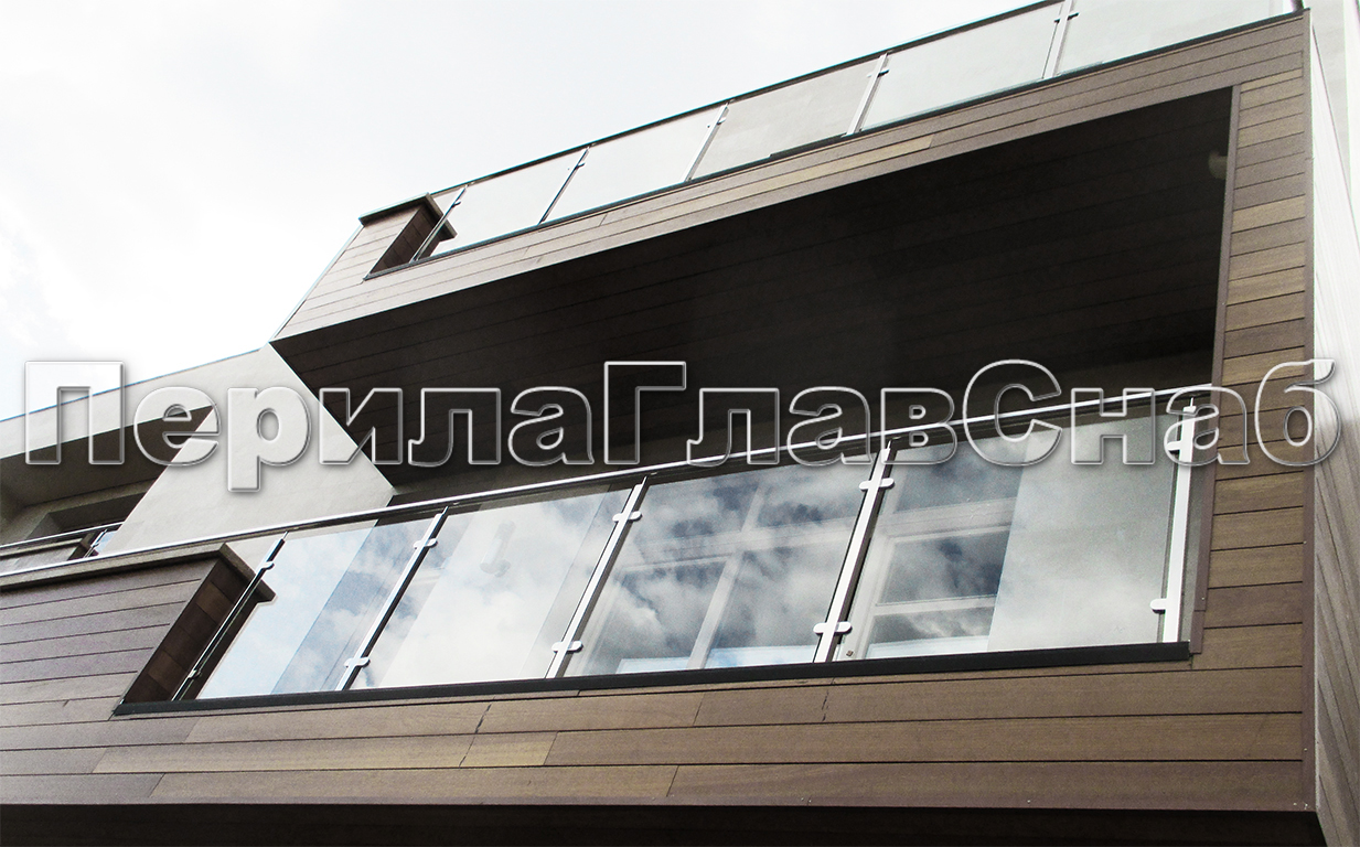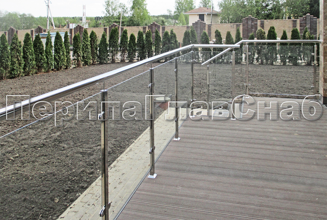 Ограждения из нержавейки со стеклом без поручней также очень популярны. Чаще всего их предпочитают для оборудования открытых площадок кафе, балконов, террас загородных домов.