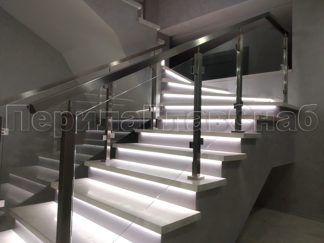 Ограждения лестницы без поручня с зажимными стеклодержателями и стойками в Краснодаре. Готовые проекты ПерилаГлавСнаб - фото 1 Ограждения лестницы без поручня с зажимными стеклодержателями и стойками в Краснодаре. Готовые проекты ПерилаГлавСнаб - фото 2