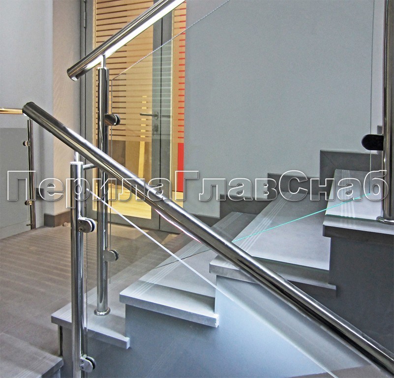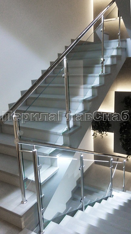 Ограждение для лестницы из нержавейки с зажимными стеклодержателями для крыльца