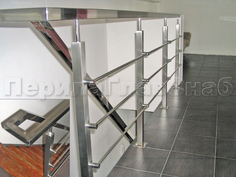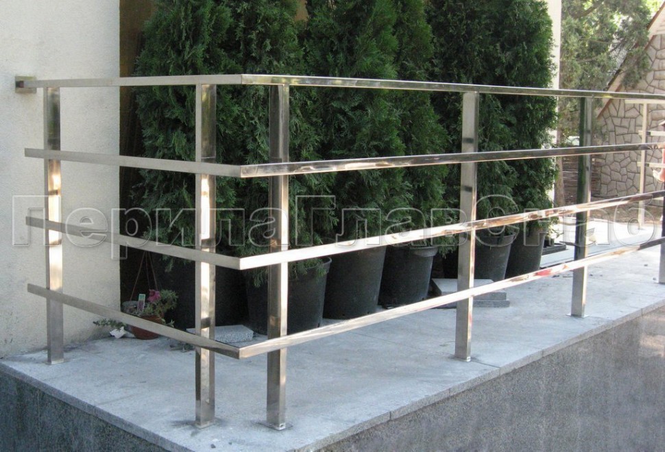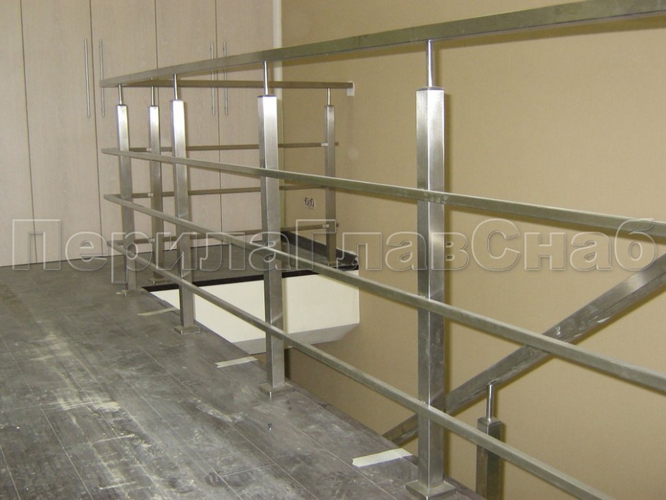 Записаться на встречу Три ригеля на сварке, квадратный поручень и круглые стойки