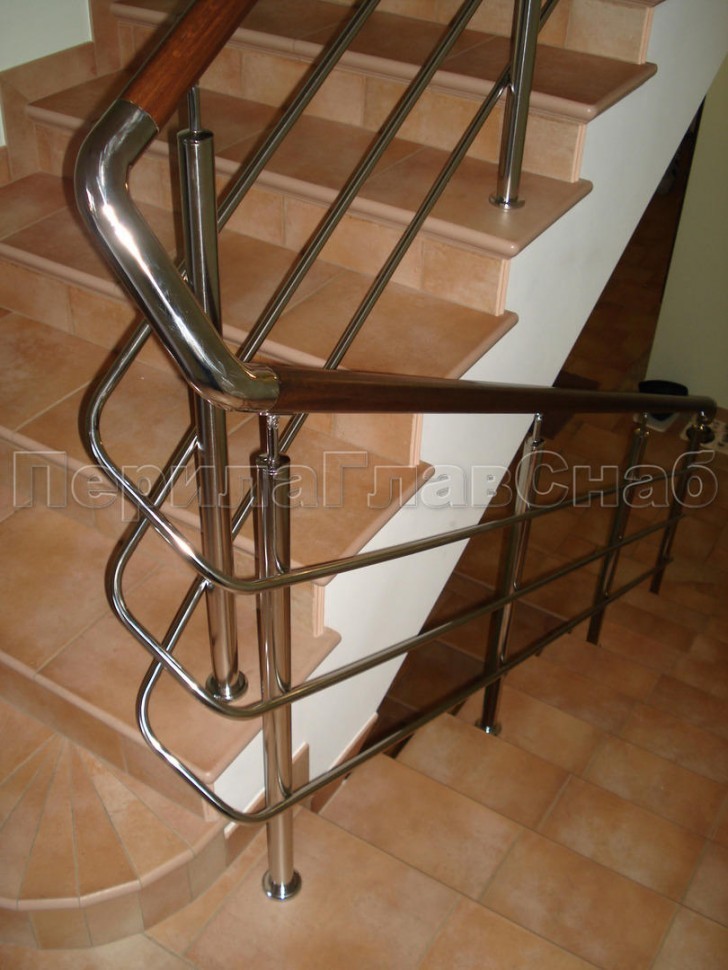 Четыре ригеля на сварке, квадратный поручень и круглые стойки