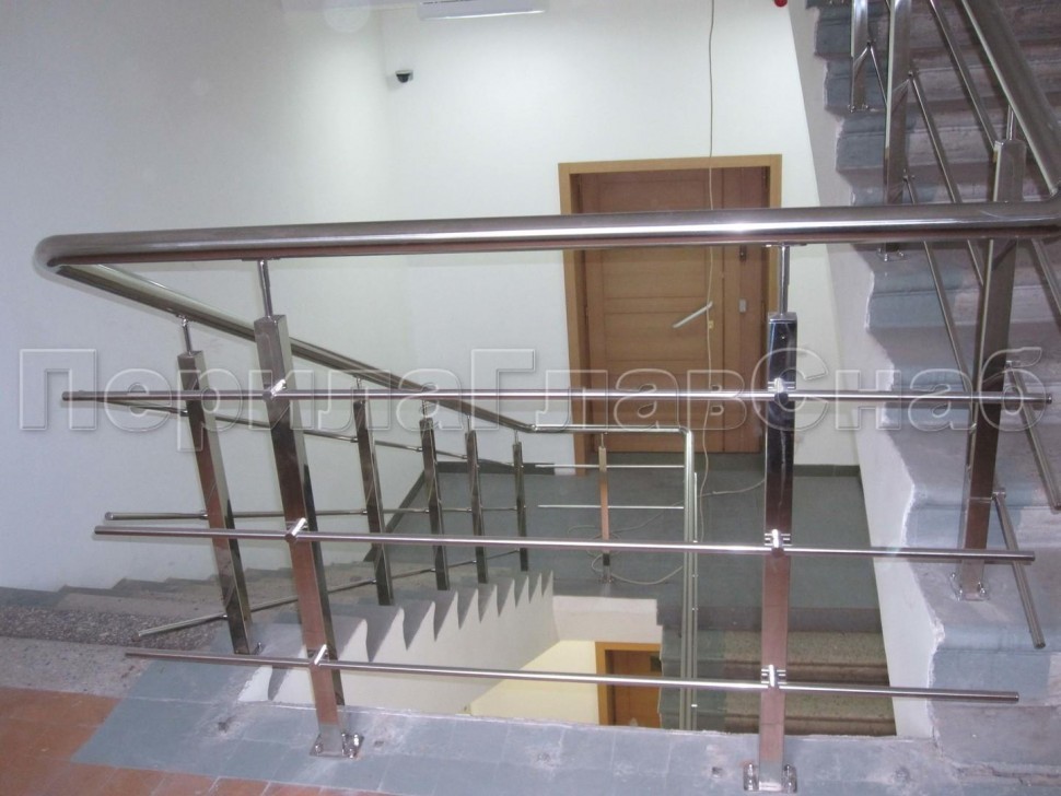 Четыре ригеля на сварке, квадратный поручень и круглые стойки