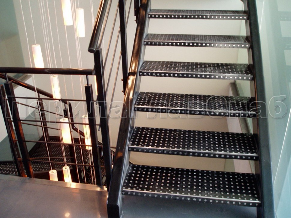 Ограждения с квадратным поручнем со стойками в каждую ступень без ригелей