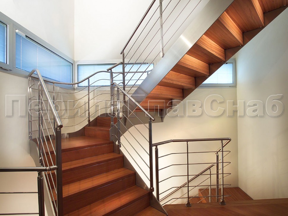 Ограждения с двумя стойками в каждую ступень с деревянным поручнем и без ригелей