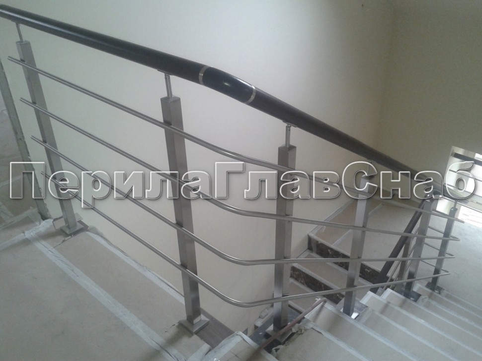Четыре ригеля на сварке, круглый поручень и квадратные стойки