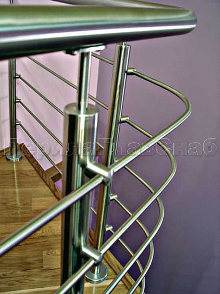 Четыре ригеля на сварке, круглый поручень и круглые стойки для крыльца