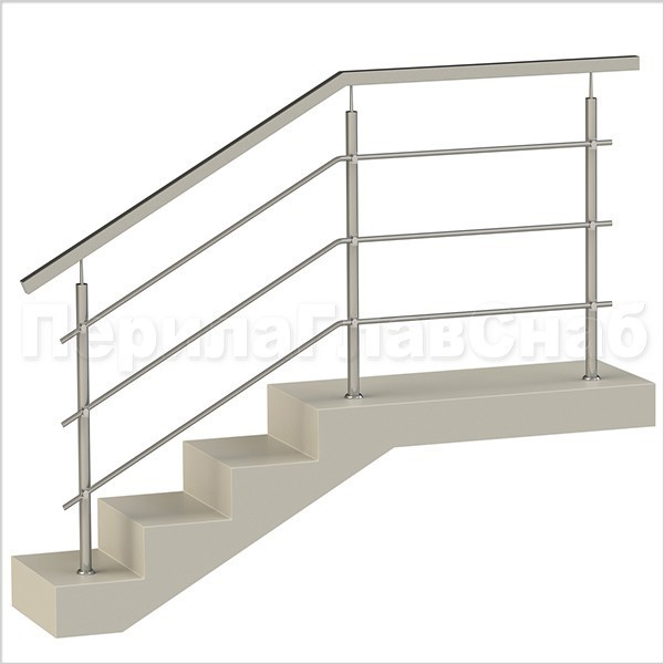 Три ригеля на держателях, квадратный поручень и круглые стойки