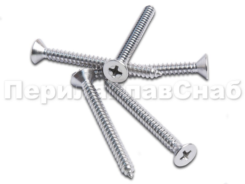 Саморез DIN 7982 (винт самонарезающий) для тонких металлических листов, с крестообразным шлицем, потайная головка. Форма С - заострен. Нержавеющая сталь: А2