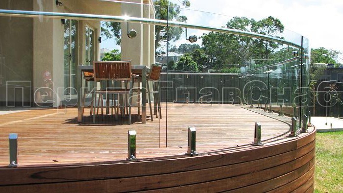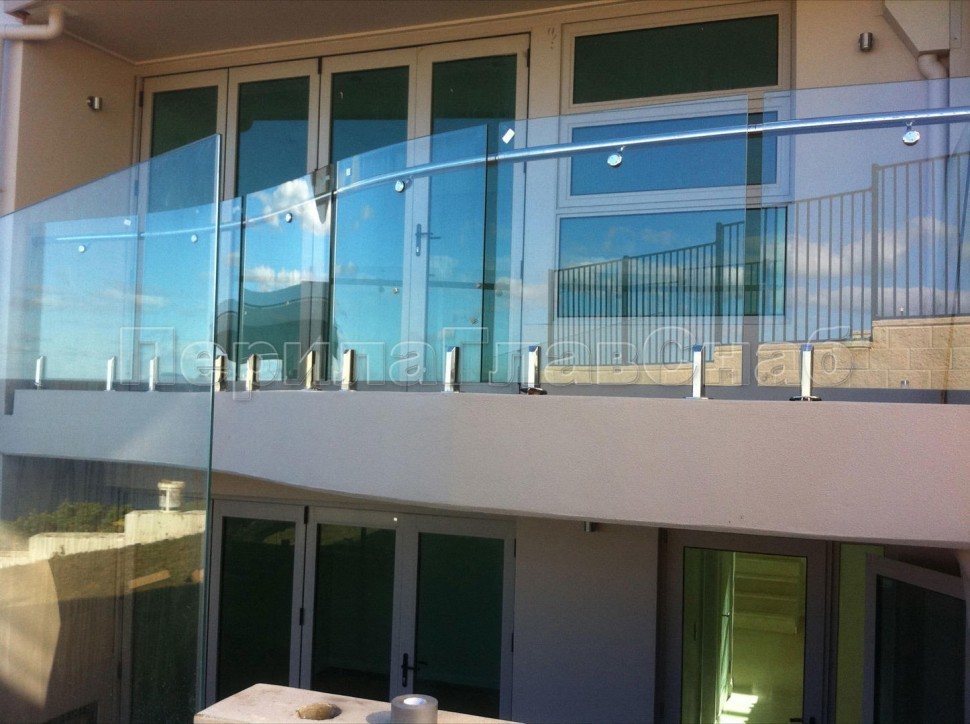 Цельностеклянные перила для балконов и лоджий с креплением на министойки.