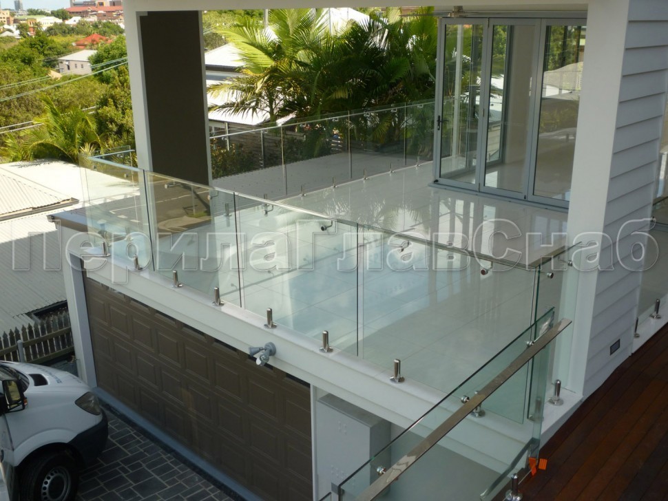 Ограждение на несущем стекле с торцевым креплением для крыш