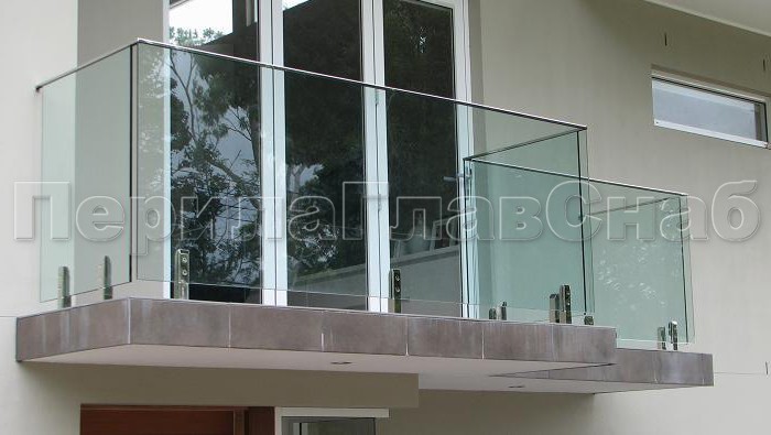 Ограждения на несущем стекле с торцевым креплением для балкона