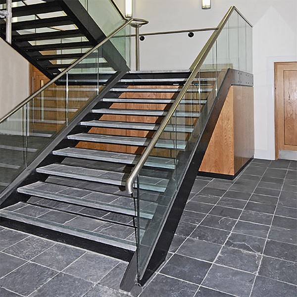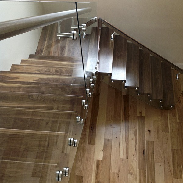 Примеры удачных решений стеклянных перил для маршевых лестниц
