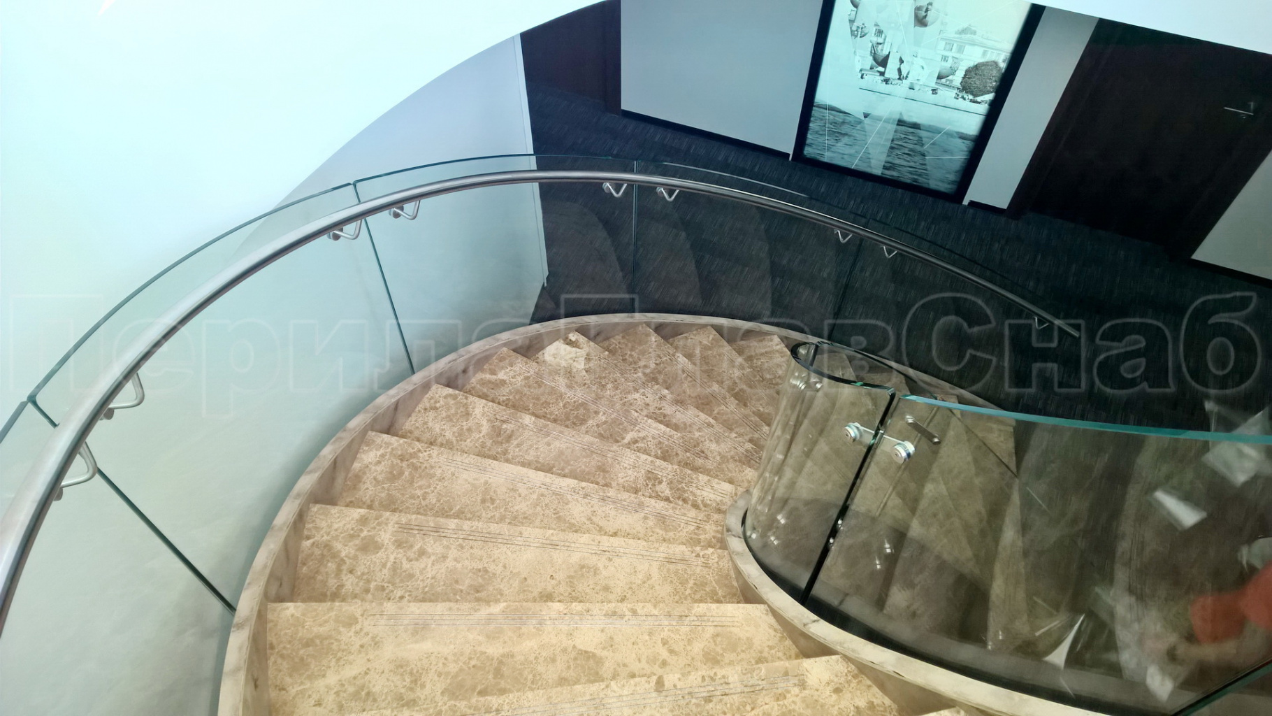 Стеклянные ограждения маршевых лестниц в интерьере - фото