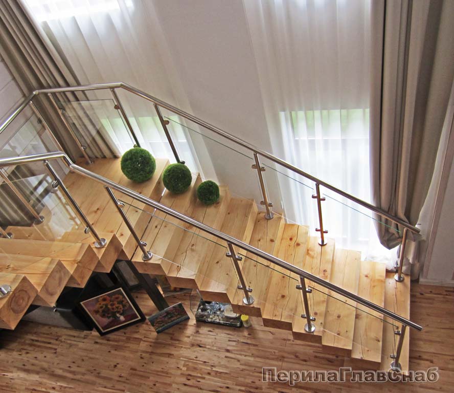 • Поручень - деревянная труба с пазом. Как дополнительная опция - можно включить подсветку стекла.