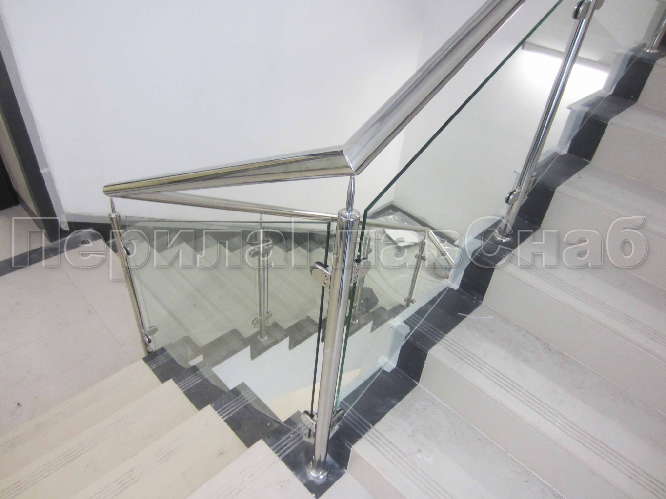 Ограждение для лестницы из нержавейки с зажимными стеклодержателями для крыльца в Краснодаре. Готовые проекты ПерилаГлавСнаб - фото 1 Ограждение для лестницы из нержавейки с зажимными стеклодержателями для крыльца в Краснодаре. Готовые проекты ПерилаГлавСнаб - фото 2