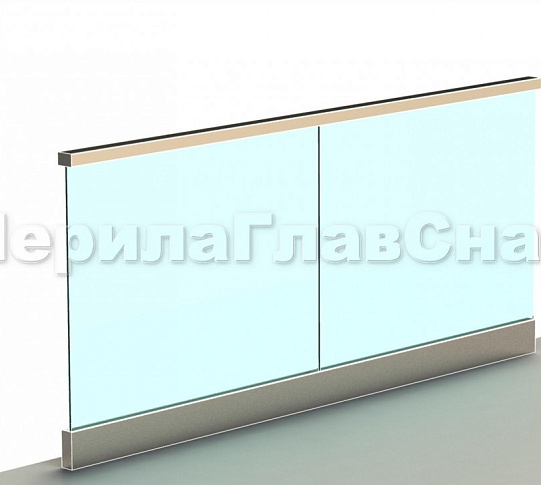 Ограждение с квадратным деревянным поручнем на точечном креплении