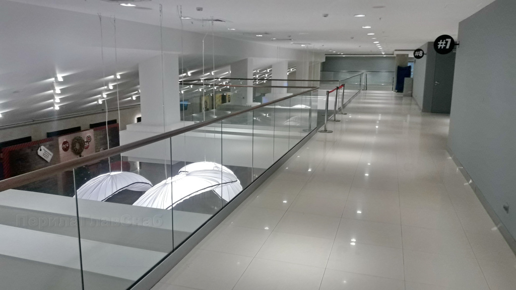 Стеклянные перила для атриума в 2-х этажном магазине.