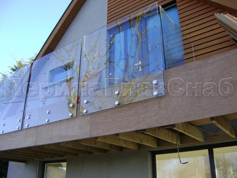 • Самый интересный вариант - установка защитного профиля на кромку стекла и специального выносного поручня.