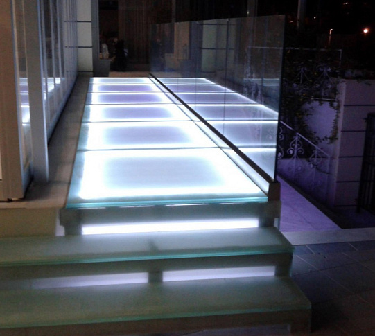 Записаться на встречу            Стеклянный подиум со ступенями с подсветкой