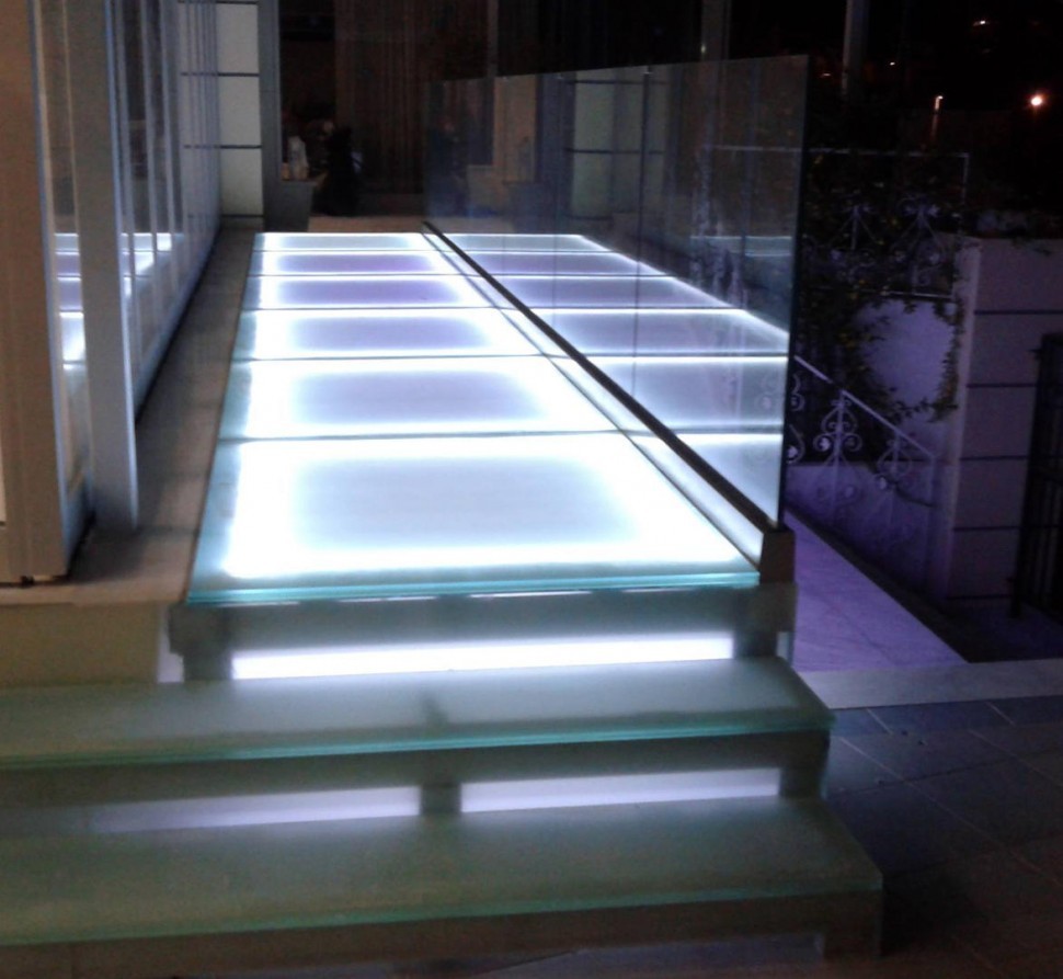Записаться на встречу            Стеклянный подиум со ступенями с подсветкой